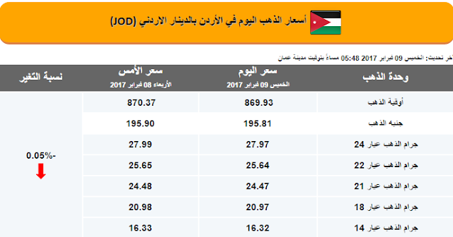 اسعار الذهب اليوم الخميس 09 فبراير 2017